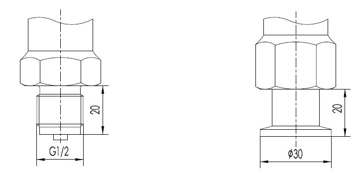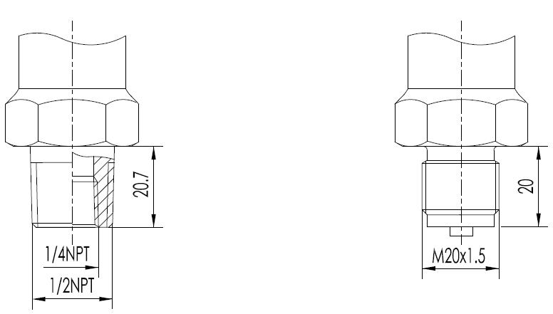 1/2英寸NPT 外螺紋(代碼2)                           M20x1.5 外螺紋(代碼3)